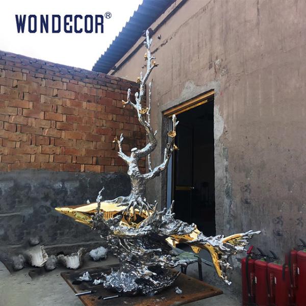 Stainless steel wave shark tree sculptures can be customized according to customer needs, including personalized design in terms of size, shape, style, and other aspects. This makes the sculpture more in line with the client's aesthetic needs and usage scenarios.