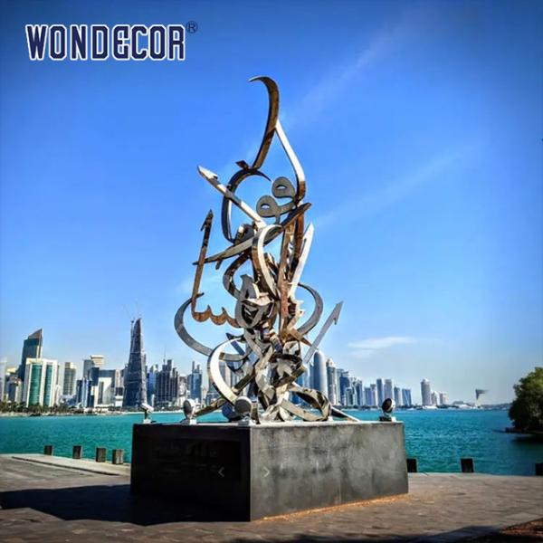 The inherent industrial aesthetic characteristics of stainless steel materials perfectly integrate modern artistic language with natural space. Its advantages are reflected in multiple dimensions: firstly, the excellent corrosion resistance and oxidation resistance of stainless steel can resist natural erosion such as acid rain and salt spray, maintaining a long-lasting metallic texture in outdoor environments. Combined with high strength and toughness, it ensures that the sculpture stands firmly in crowded square spaces; Abstract geometric modeling breaks through the limitations of concrete expression and constructs a three-dimensional structure full of tension through cutting, welding, and other processes. The sharp and angular blocks form a dramatic contrast with streamlined surfaces, creating rich layers of light and shadow in the sunlight. It not only has a strong visual impact, but also echoes the spacious view of the square; Modular design supports multi-dimensional combinations, which can serve as independent landmarks to focus on the visual center, as well as guide the flow of people through an array layout. The hollow structure creates a navigable space that further enhances the interactive experience between people and art; The ultra-low maintenance cost, self-cleaning characteristics, and partial repairability enable this large-scale public art installation to maintain structural integrity and aesthetic value in long-term use, becoming an artistic container that carries urban cultural memory and public life.